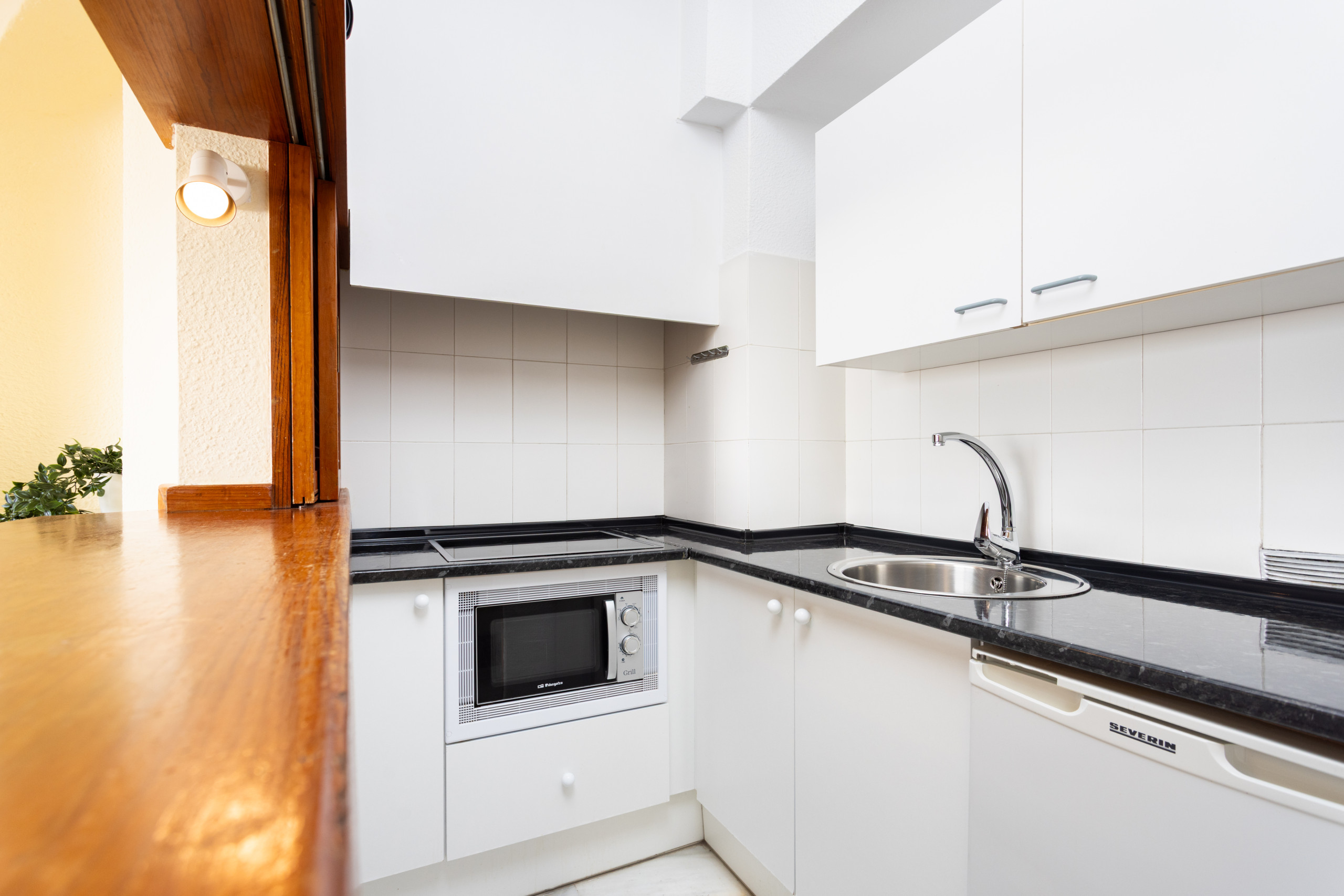 El apartamento cuenta con un dormitorio principal con una cama doble y un sofá cama adicional, permitiendo alojar cómodamente hasta 3 personas. La distribución inteligente del espacio garantiza confort y funcionalidad. Dispone de un único baño con bañera, ideal para relajarse después de un día de aventuras.