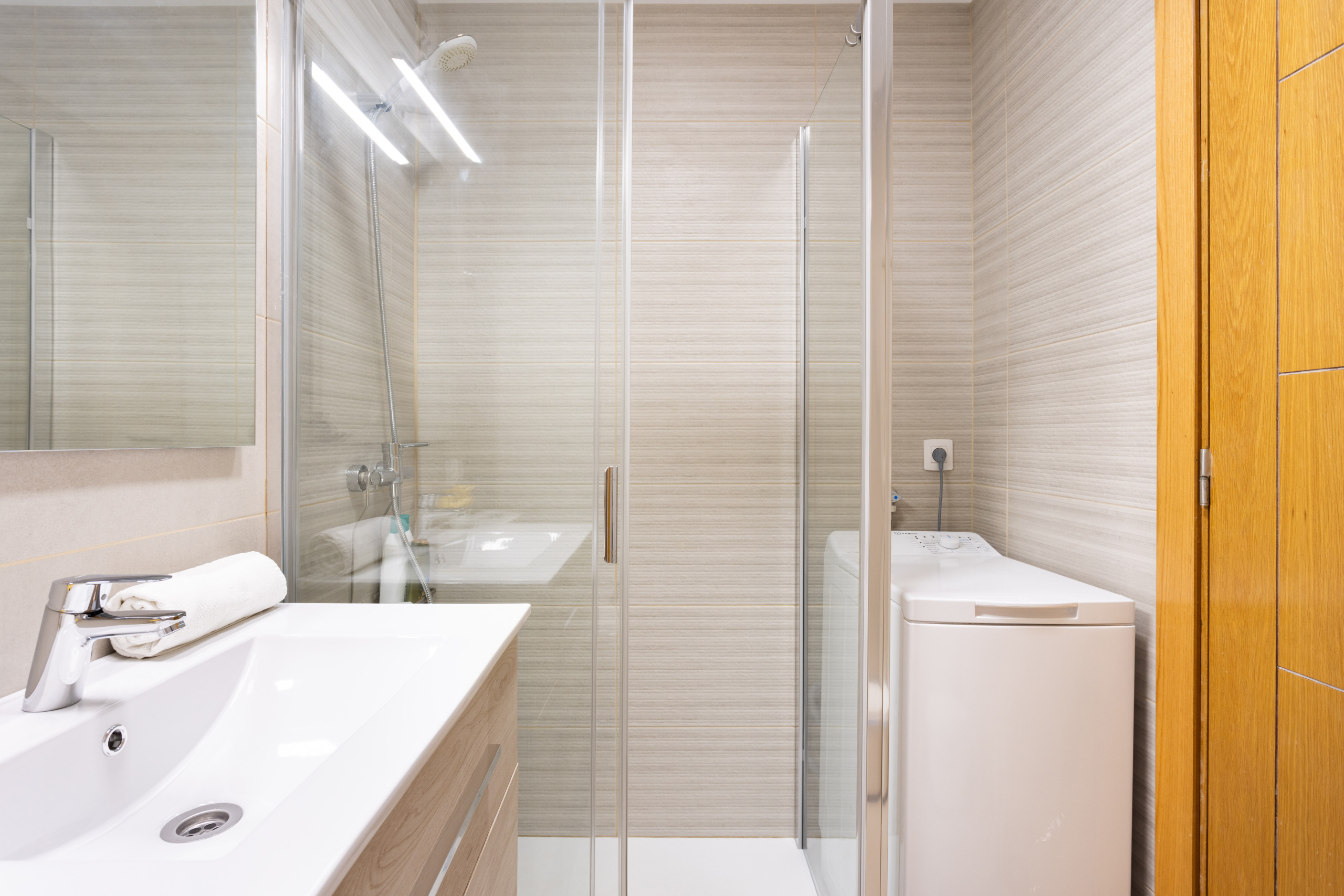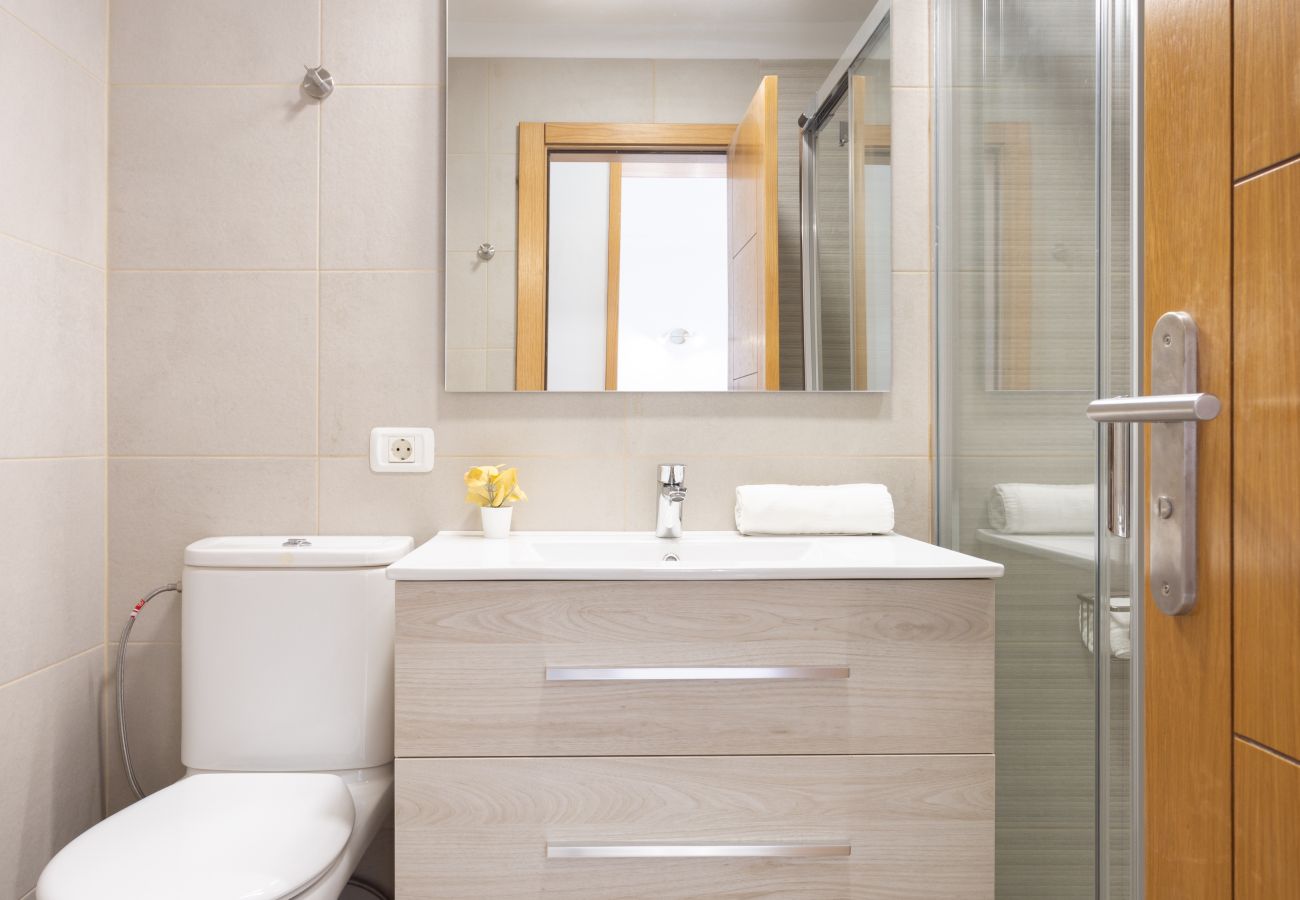 El apartamento cuenta con 2 dormitorios y 1 baño, con capacidad para 4 personas. Dispone de un dormitorio con una cama doble y otro con 2 camas individuales. El baño completo reformado cuenta con una amplia y cómoda ducha además encontrarás lavadora disponible.