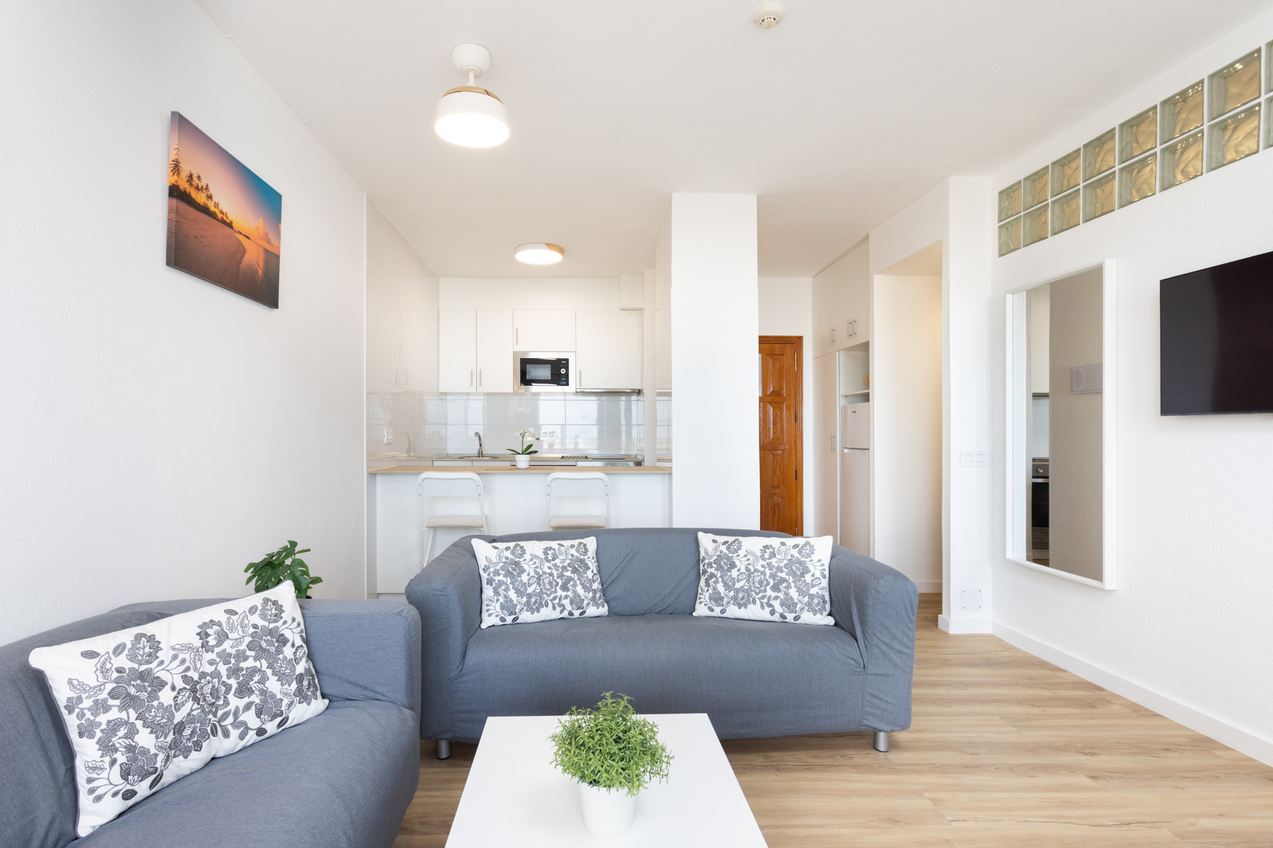 Estupendo apartamento, con amplio salón, cocina abierta y terraza con increíbles vistas. Muy luminoso, fresco e ideal tanto para parejas y/o amigos como para pequeñas familias. Zona tranquila y playa a sólo 2 minutos andando. Se encuentra totalmente equipado y dispone de Wifi.