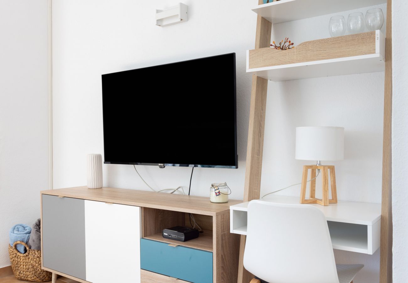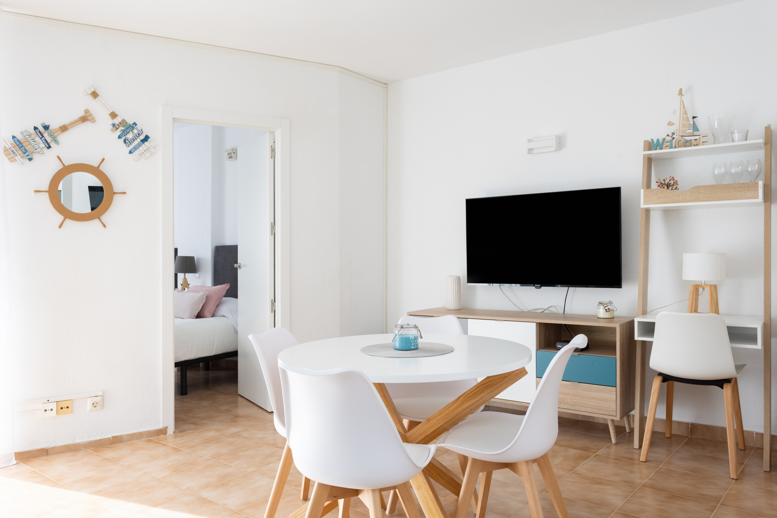 This beautiful and comfortable apartment is decorated with a modern and cheerful touch. It has all the comforts and all the necessary equipment for an ideal stay. It is very practical, it has a bedroom with two single beds and a double sofa bed. New and modern American kitchen, dining room, Smart TV, Wifi, a small workspace, a complete bathroom and a small terrace that is normally sunny and with sea views.