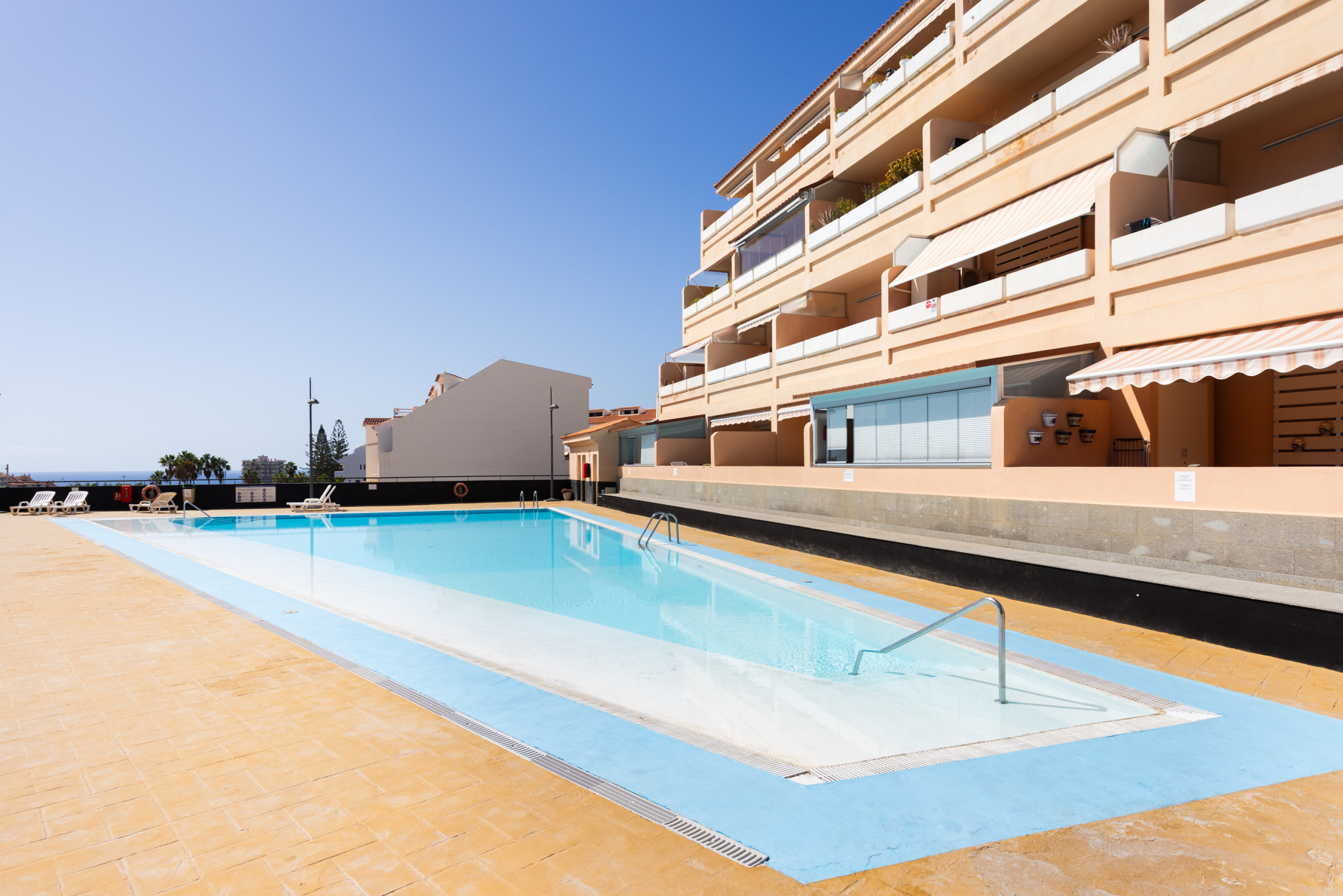 Nice and charming apartment with views of the sea and the pool, next to the promenade in Los Cristianos. With an excellent location ideal for beautiful walks by the sea, and just a few minutes walk from Playa de Los Cristianos and Playa de las Vistas. You can find all the necessary services very close and a wide variety of shops, restaurants, cafes, shops and supermarkets nearby.