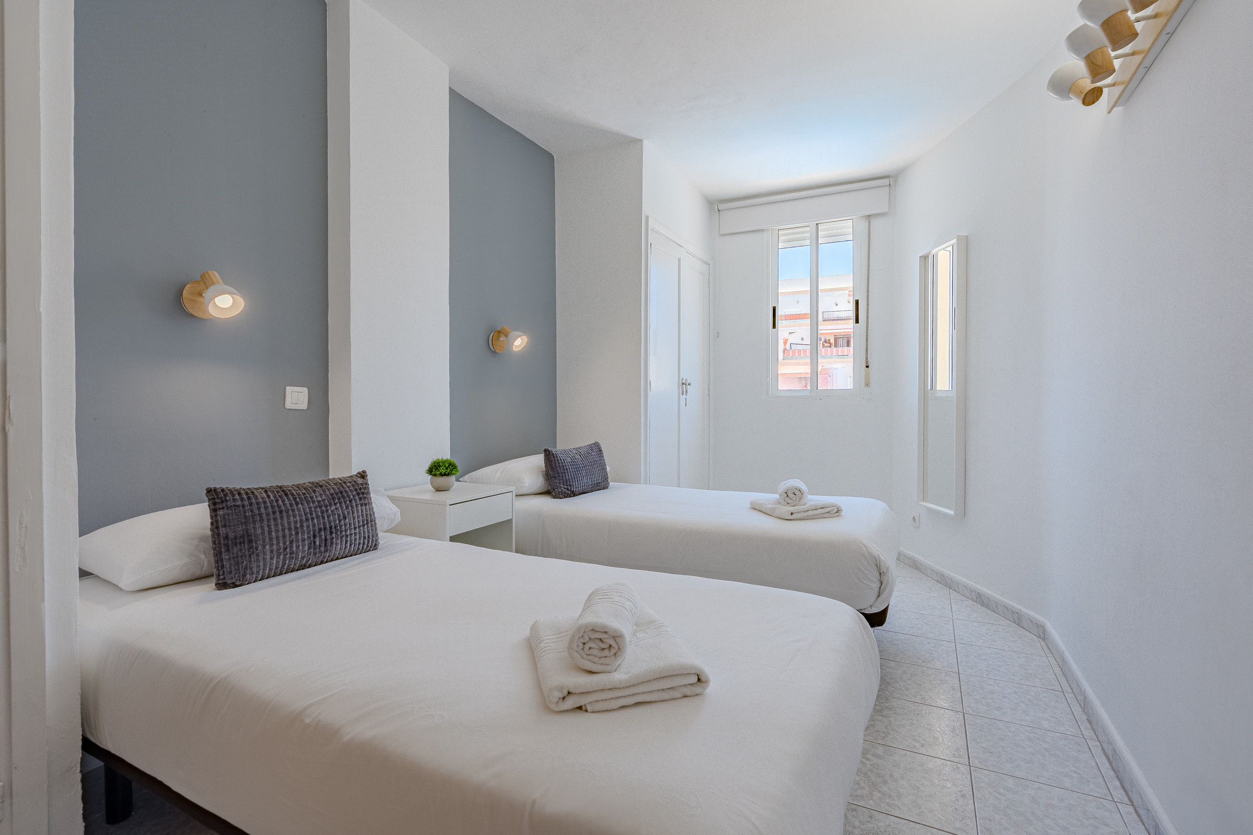 Ce bel et confortable appartement est préparé et équipé de tout ce dont vous avez besoin pour un séjour idéal en bord de mer. Il dispose d'une belle chambre avec deux lits simples et placards intégrés. Un salon spacieux. Une magnifique et spacieuse cuisine américaine entièrement équipée. Il dispose également d'une salle à manger, d'un canapé-lit et d'une Smart TV. Il dispose d'une grande et complète salle de bain. Il y a aussi une belle terrasse avec vue partielle sur la mer et la piscine, idéale pour prendre l'air et prendre ses repas en plein air.