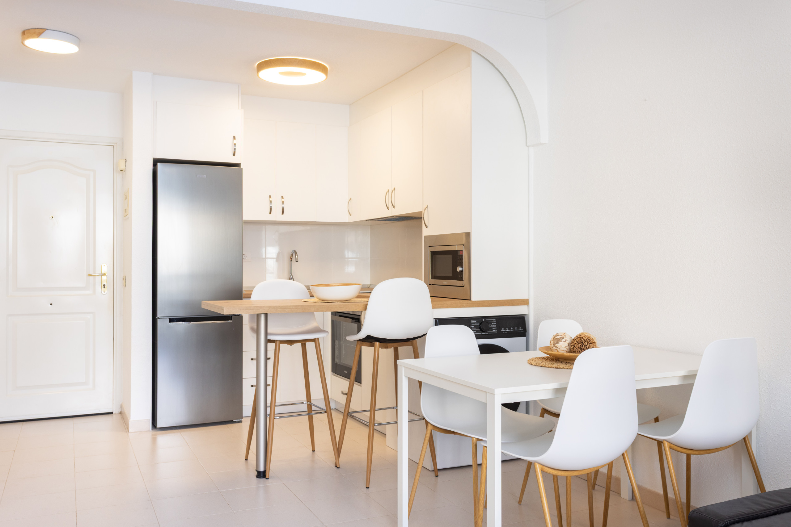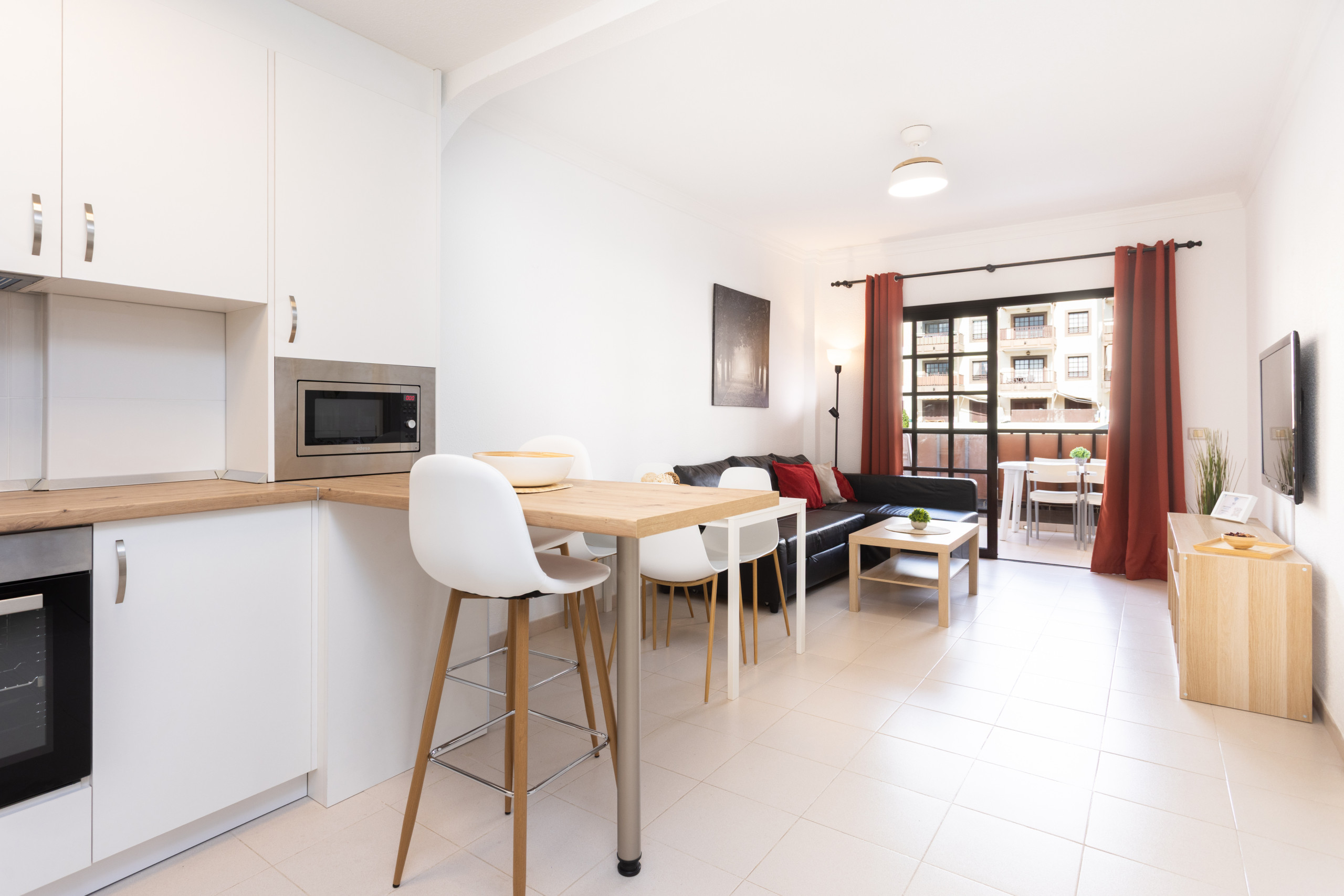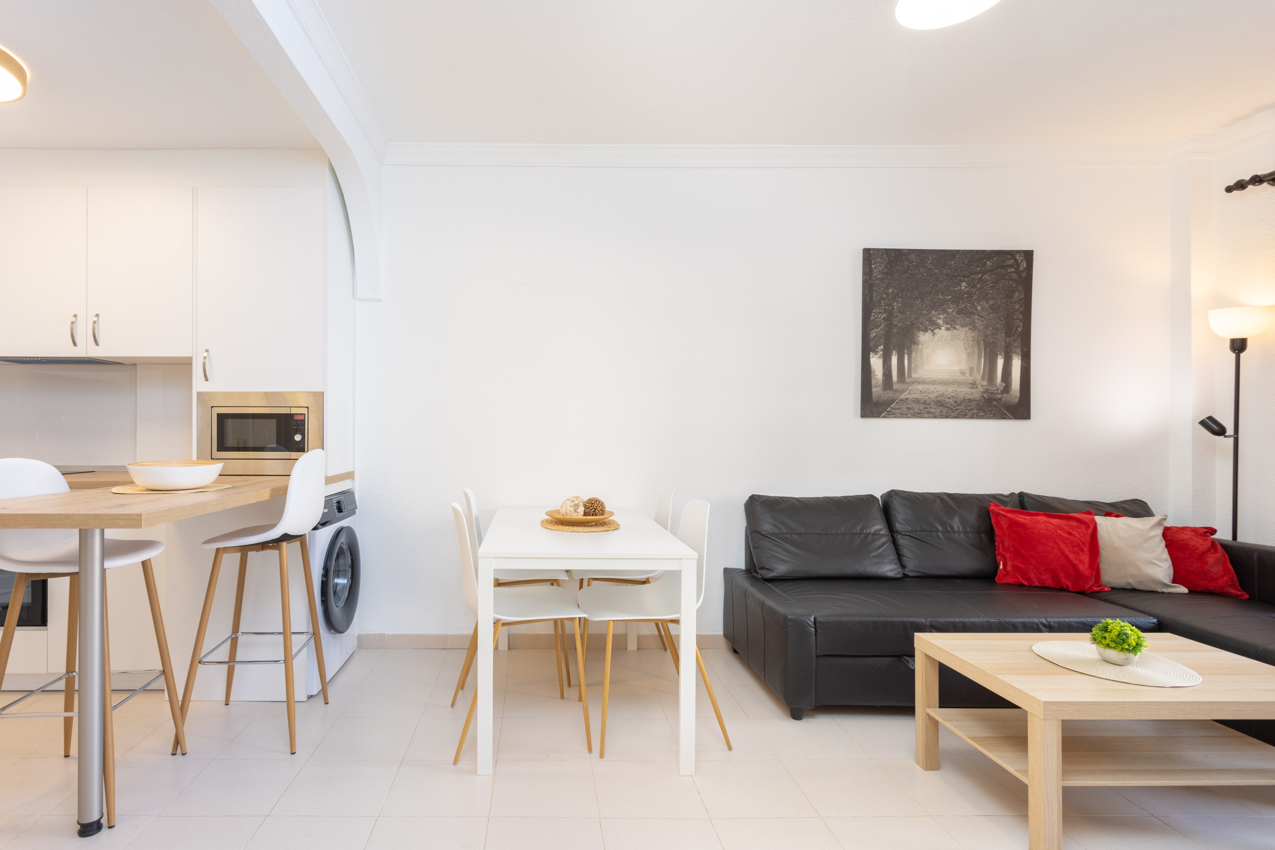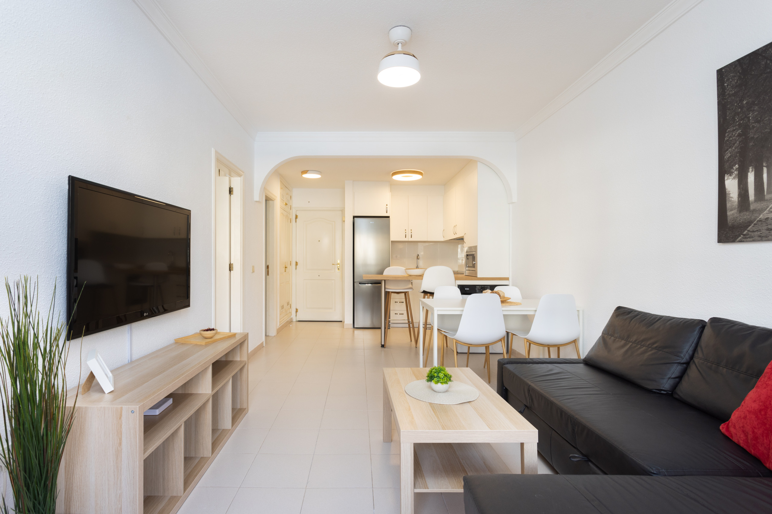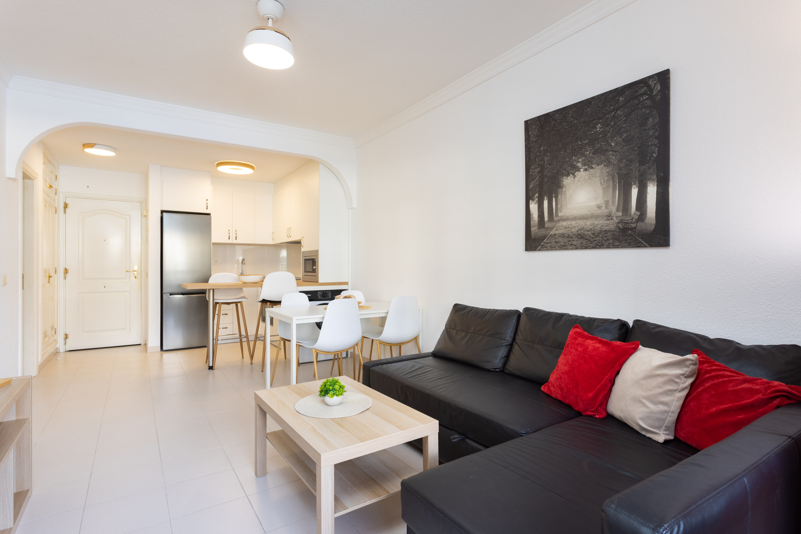 Lumineux appartement d'une chambre sur la première ligne à côté du front de mer. Terrasse avec vue sur la magnifique piscine, avec de grands espaces et des jardins bien entretenus. Le bâtiment a un accès direct à la promenade. Chambre avec lit double, grand salon avec TV plasma, kitchenette, 1 salle de bain et canapé-lit dans le salon. Accès au WIFI gratuit dans l'appartement. Possibilité d'ajouter un lit et une chaise haute