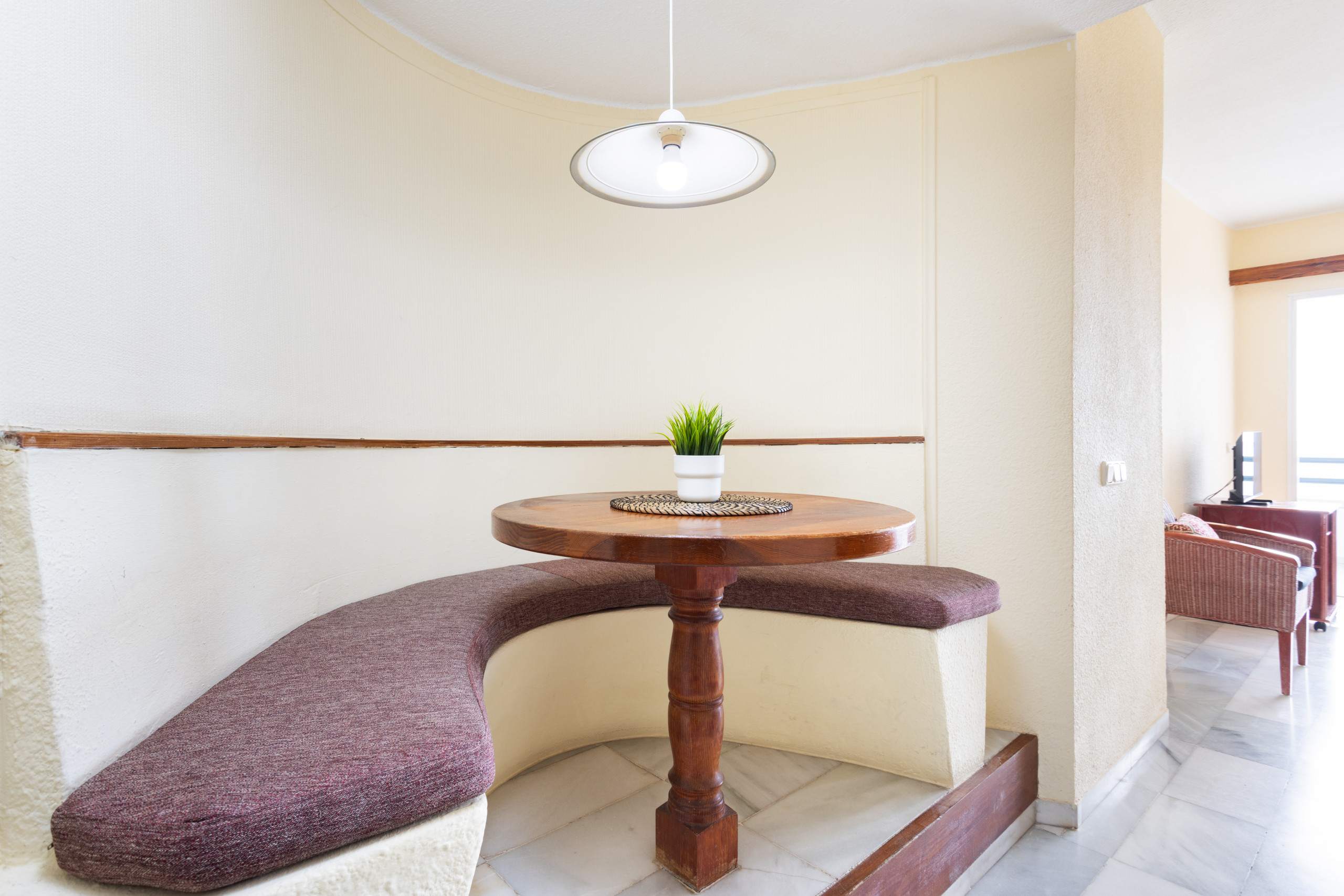 La cucina americana è completamente attrezzata con elettrodomestici moderni come frigorifero, congelatore, microonde, macchina da caffè, tostapane e bollitore. Troverai tutti gli utensili da cucina necessari per preparare deliziosi pasti. La zona dispone di connessione WiFi e televisione per rimanere connessi e intrattenuti.