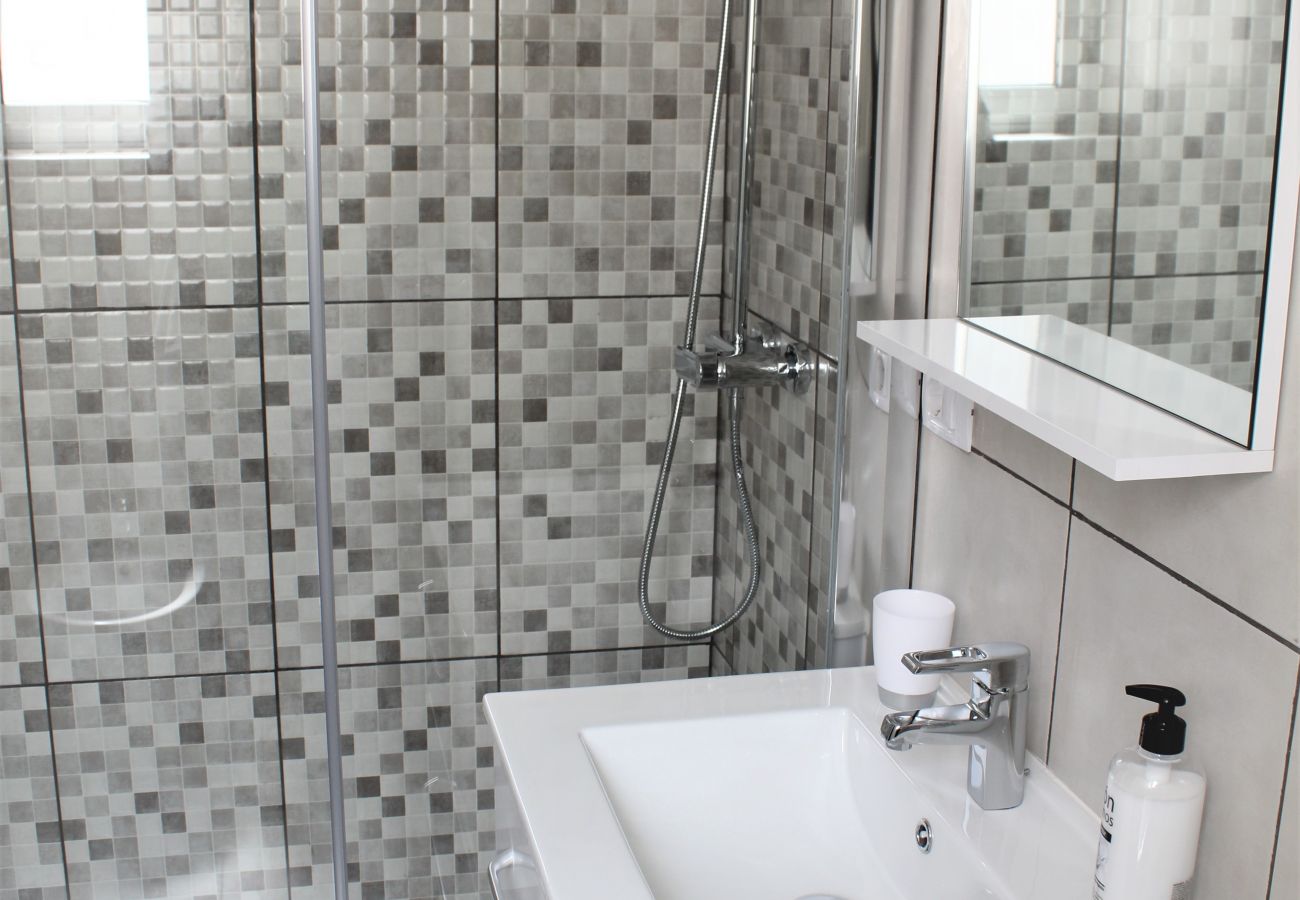 Ha una camera doppia e un divano letto nel soggiorno. Cucina aperta e moderna. Flat TV e Wifi. Anche il bagno è nuovo, luminoso e ha una finestra.